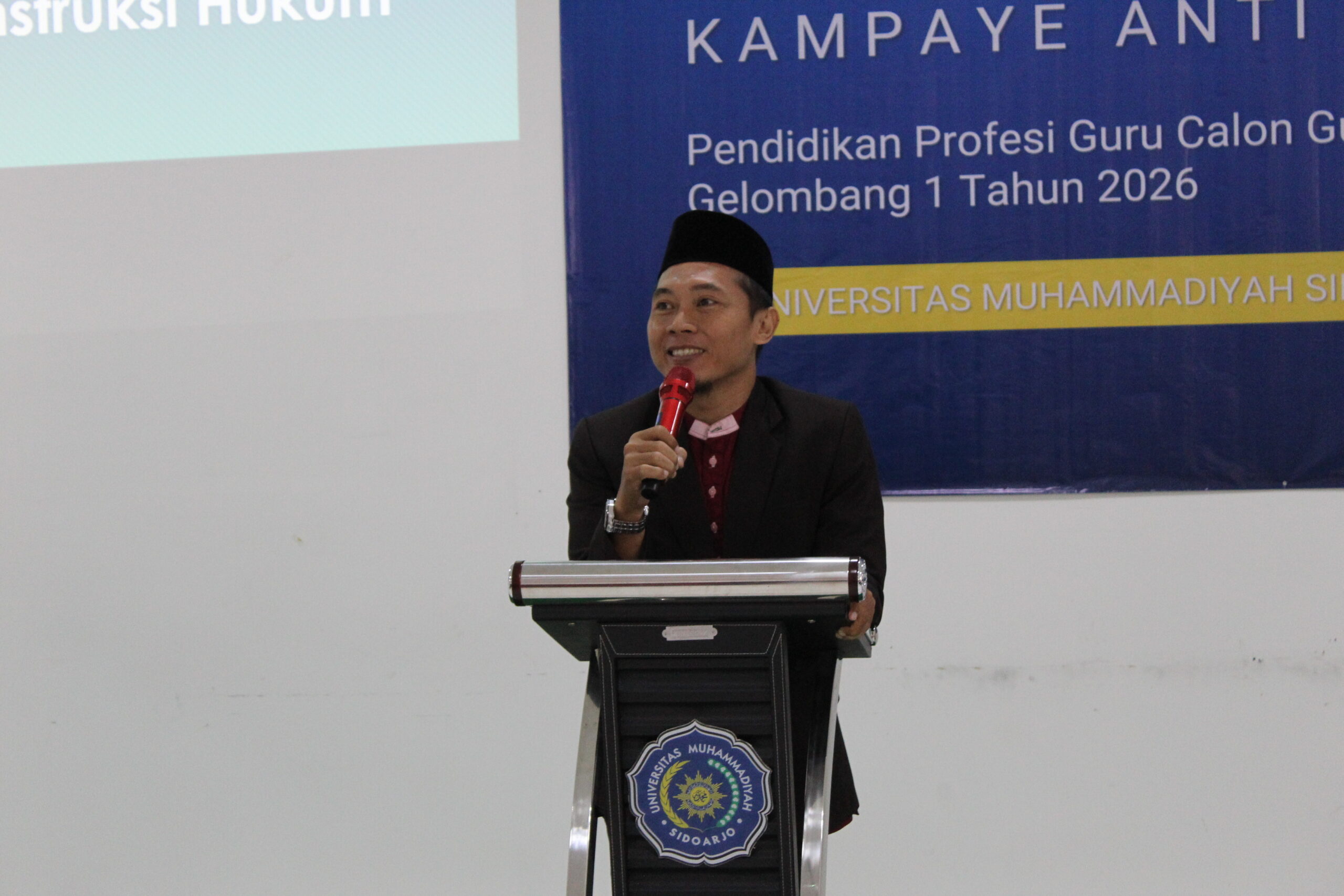 ppg.umsida.ac.id  — Program Studi Pendidikan Profesi Guru (PPG) Universitas Muhammadiyah Sidoarjo (UMSIDA) menyelenggarakan Workshop Kampanye Anti Bullying Mahasiswa PPG Calon Guru (CAGUR) Gelombang 1 Tahun 2026 pada Jumat, 06 Maret 2026. Kegiatan ini dilaksanakan di Kampus 3 UMSIDA sebagai bagian dari upaya membangun kesadaran serta kompetensi calon guru dalam mencegah dan menangani praktik perundungan di lingkungan sekolah.